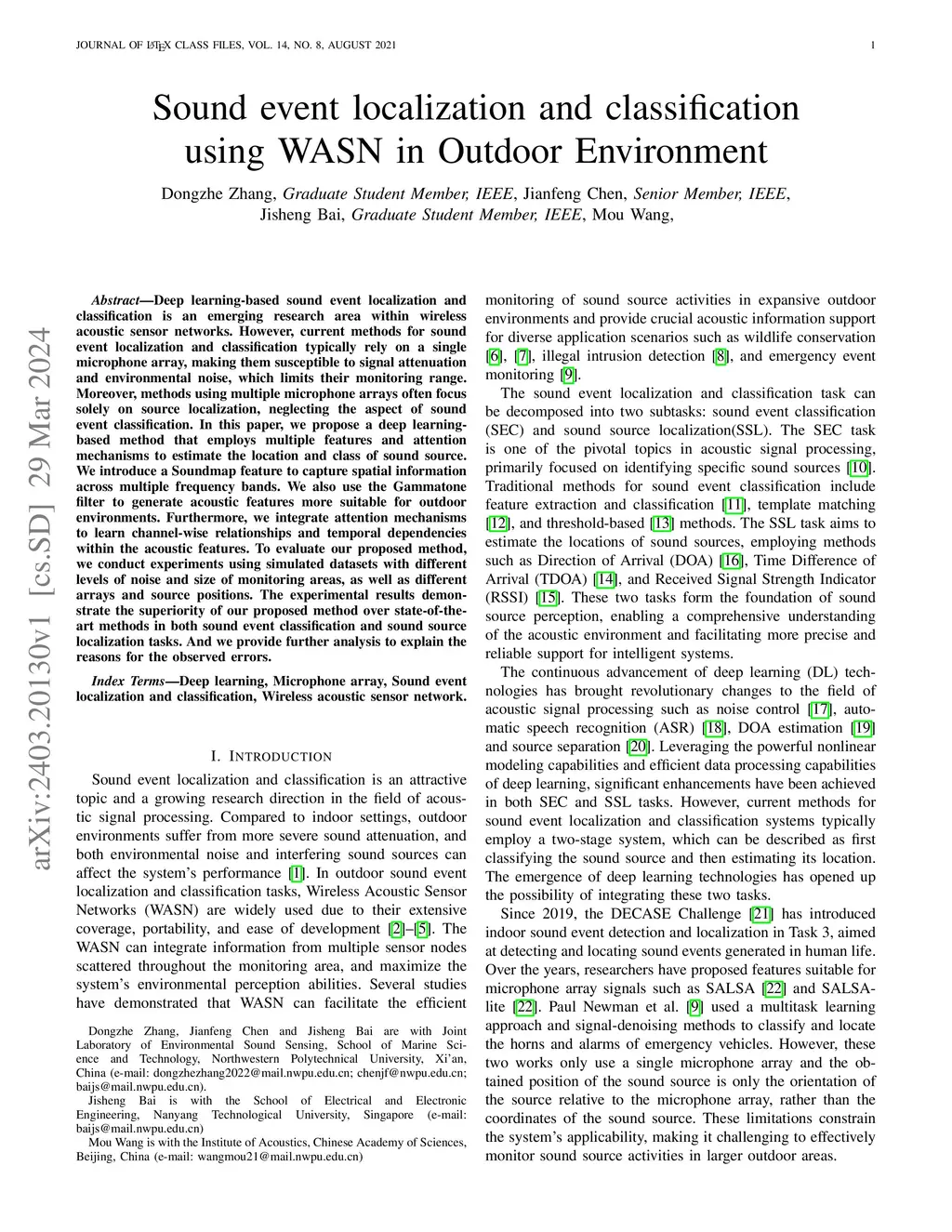Sound event localization and classification using WASN in Outdoor Environment