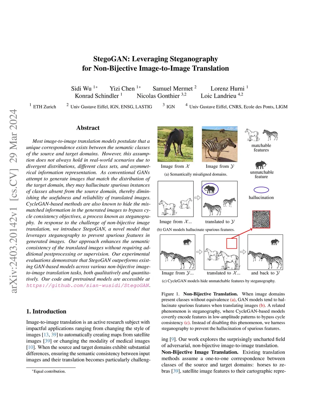 StegoGAN: Leveraging Steganography for Non-Bijective Image-to-Image