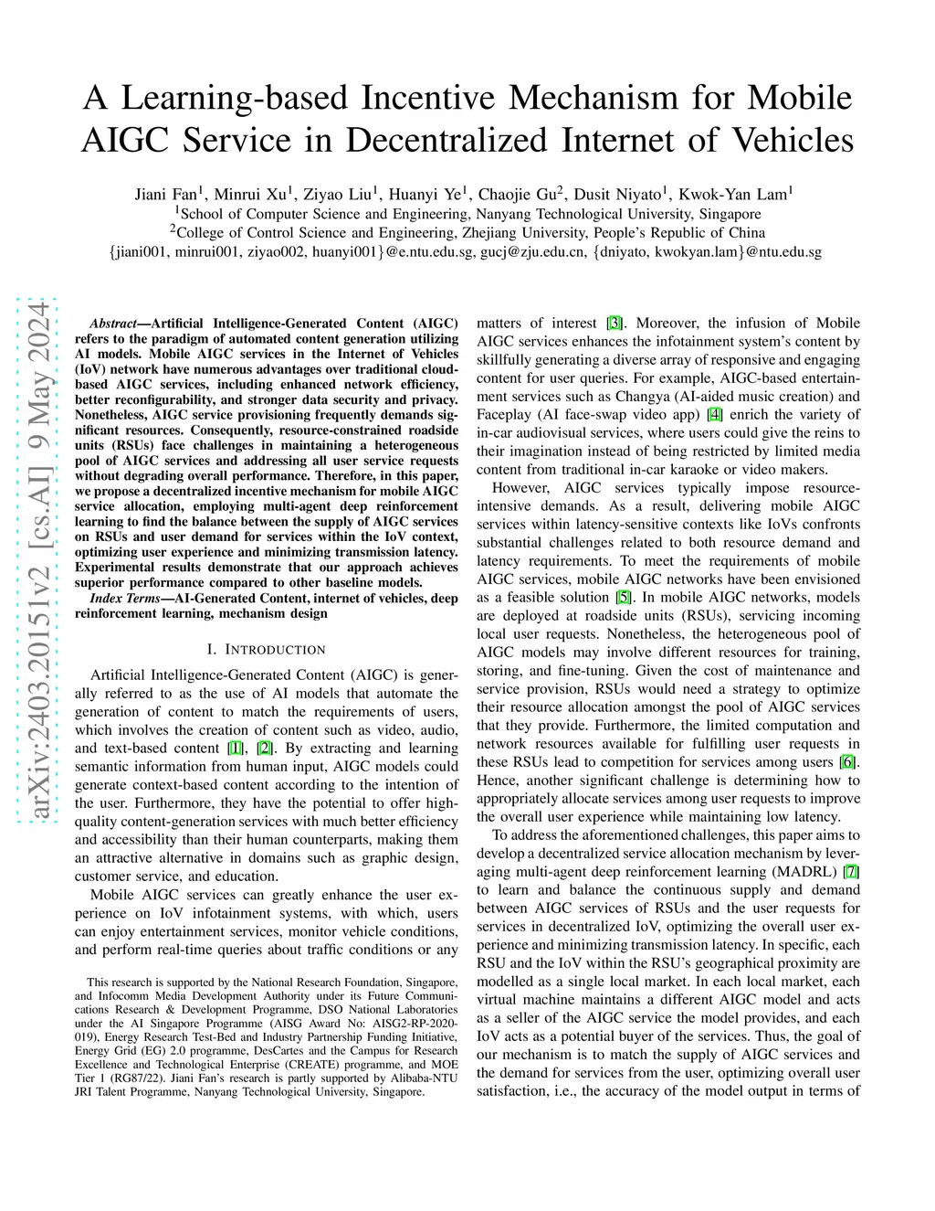 Artificial Intelligence-Generated Content (AIGC) refers to the paradigm of automated content generation utilizing AI models. Mobile AIGC services in the Internet of Vehicles (IoV) network have numerous advantages over traditional cloud-based AIGC services, including enhanced network efficiency, better reconfigurability, and stronger data security and privacy. Nonetheless, AIGC service provisioning frequently demands significant resources. Consequently, resource-constrained roadside units (RSUs) face challenges in maintaining a heterogeneous pool of AIGC services and addressing all user service requests without degrading overall performance. Therefore, in this paper, we propose a decentralized incentive mechanism for mobile AIGC service allocation, employing multi-agent deep reinforcement learning to find the balance between the supply of AIGC services on RSUs and user demand for services within the IoV context, optimizing user experience and minimizing transmission latency. Experimental results demonstrate that our approach achieves superior performance compared to other baseline models.