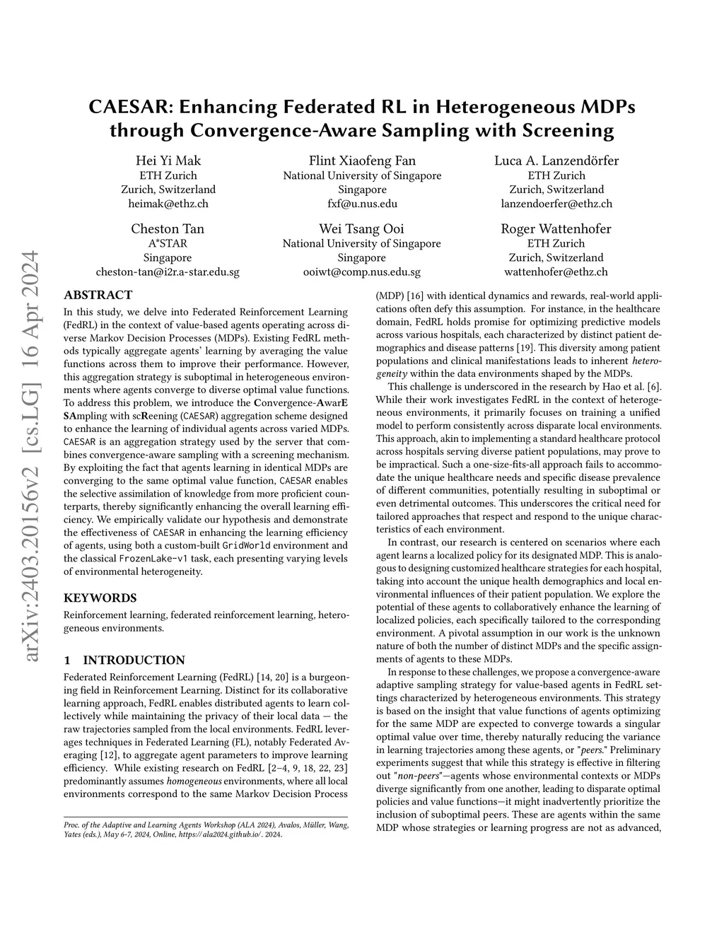 CAESAR: Enhancing Federated RL in Heterogeneous MDPs through