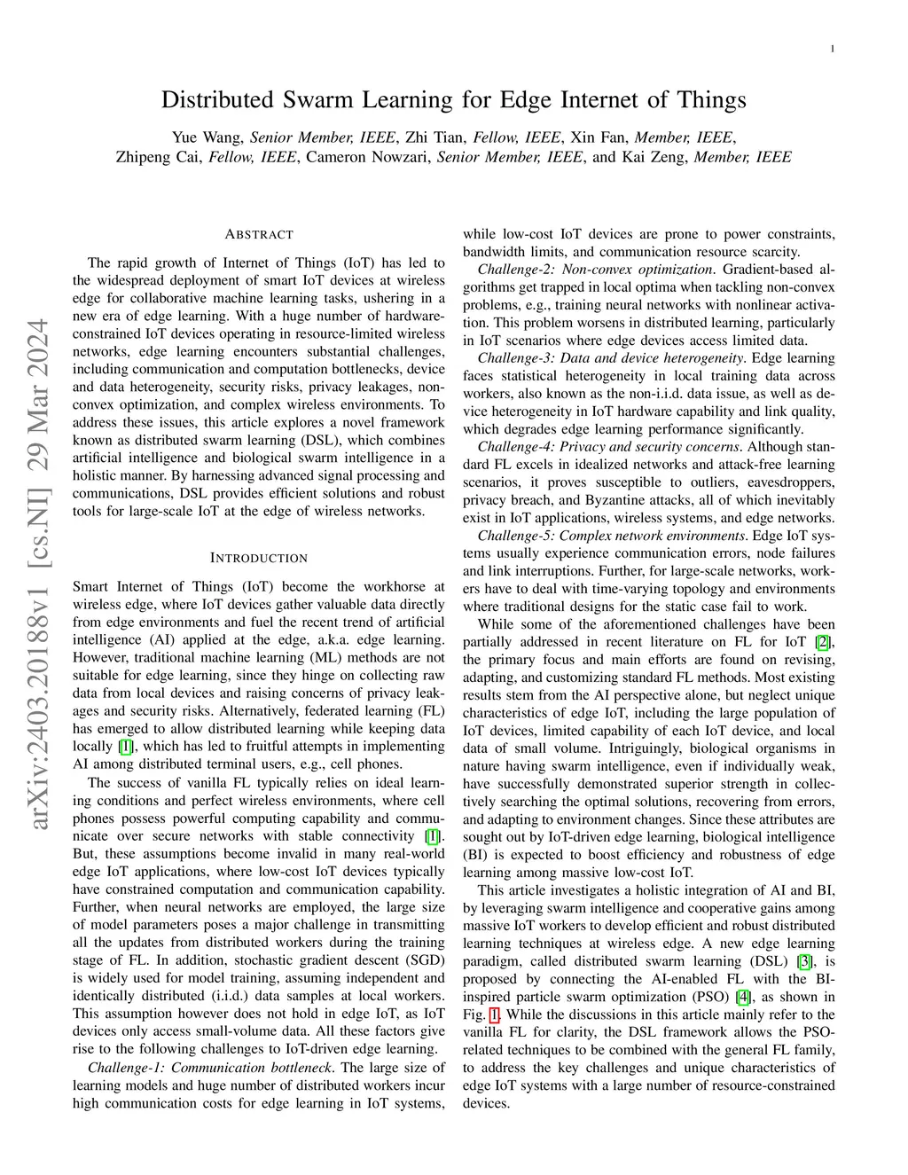 Distributed Swarm Learning for Edge Internet of Things