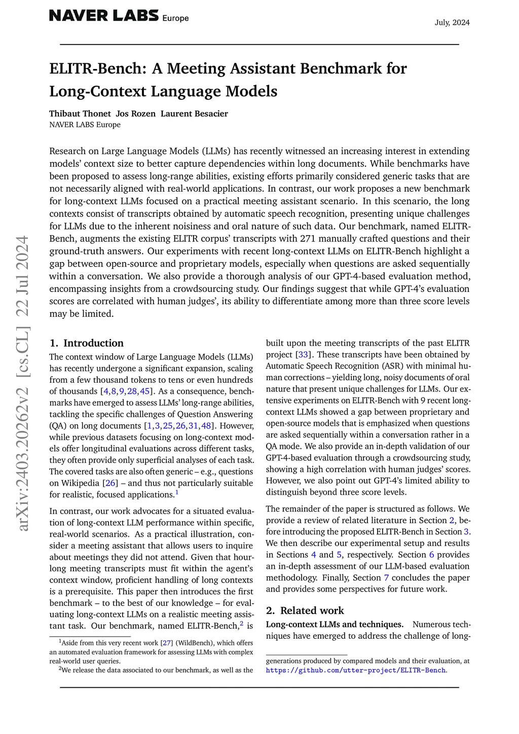 ELITR-Bench: A Meeting Assistant Benchmark for Long-Context Language Models