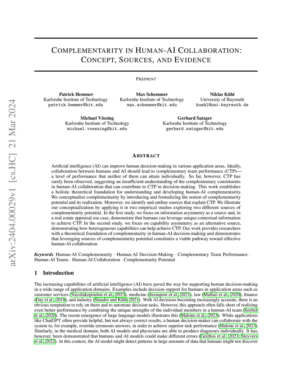 Complementarity in Human-AI Collaboration: Concept, Sources, and