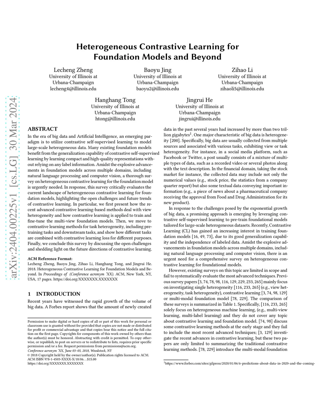 Heterogeneous Contrastive Learning for Foundation Models and Beyond
