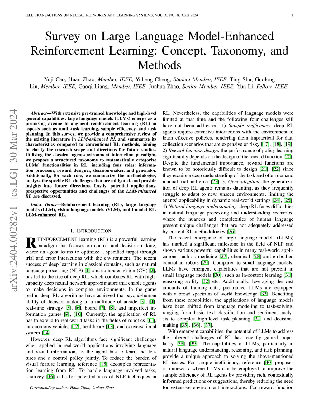 Survey on Large Language Model-Enhanced Reinforcement Learning: Concept,