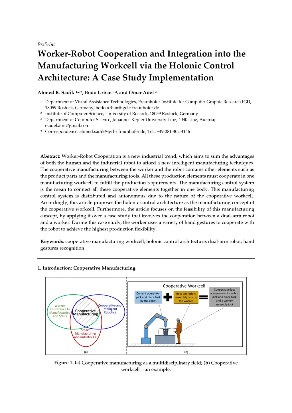 Worker Robot Cooperation and Integration into the Manufacturing Workcell