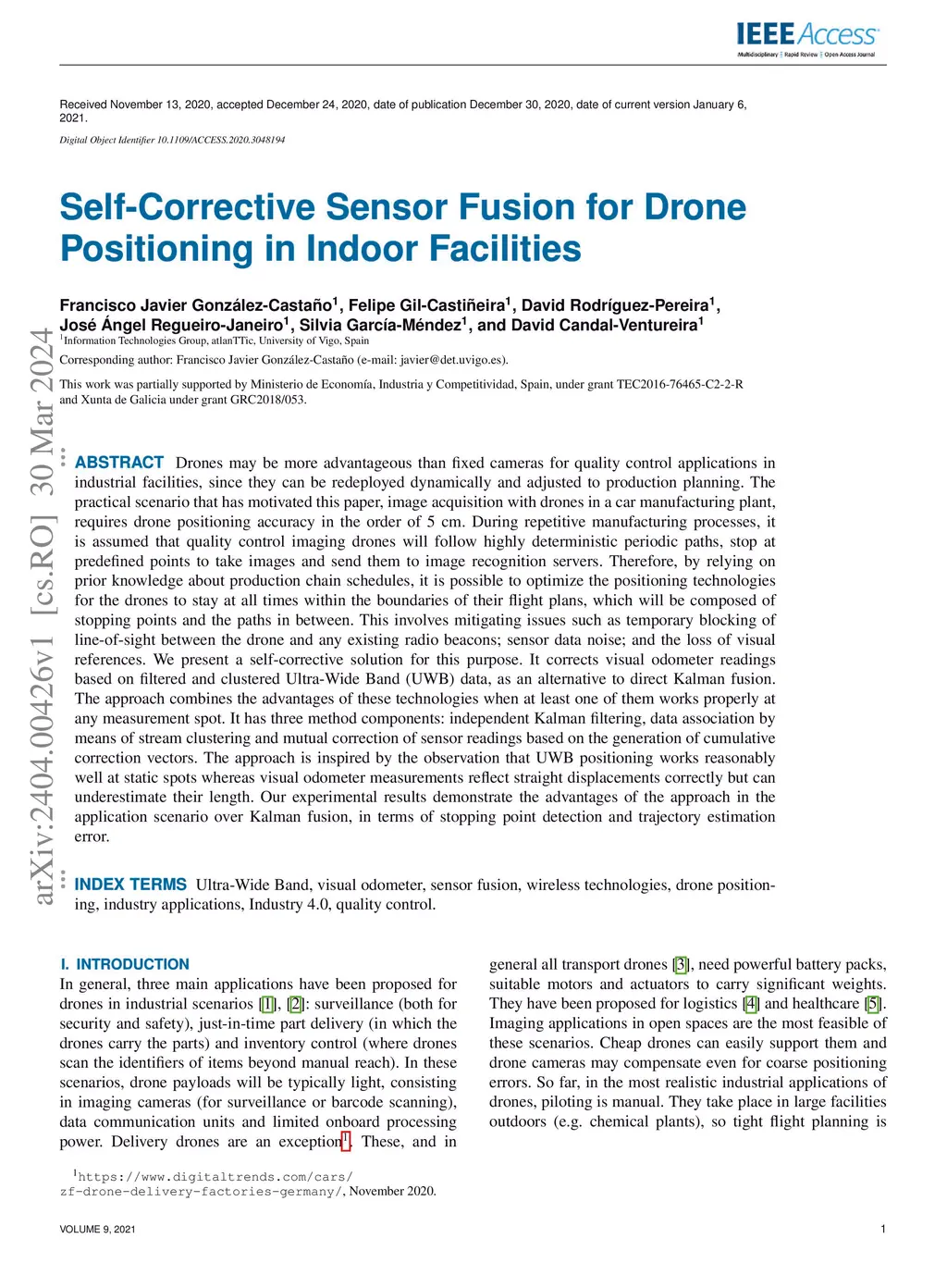 Self-Corrective Sensor Fusion for Drone Positioning in Indoor Facilities