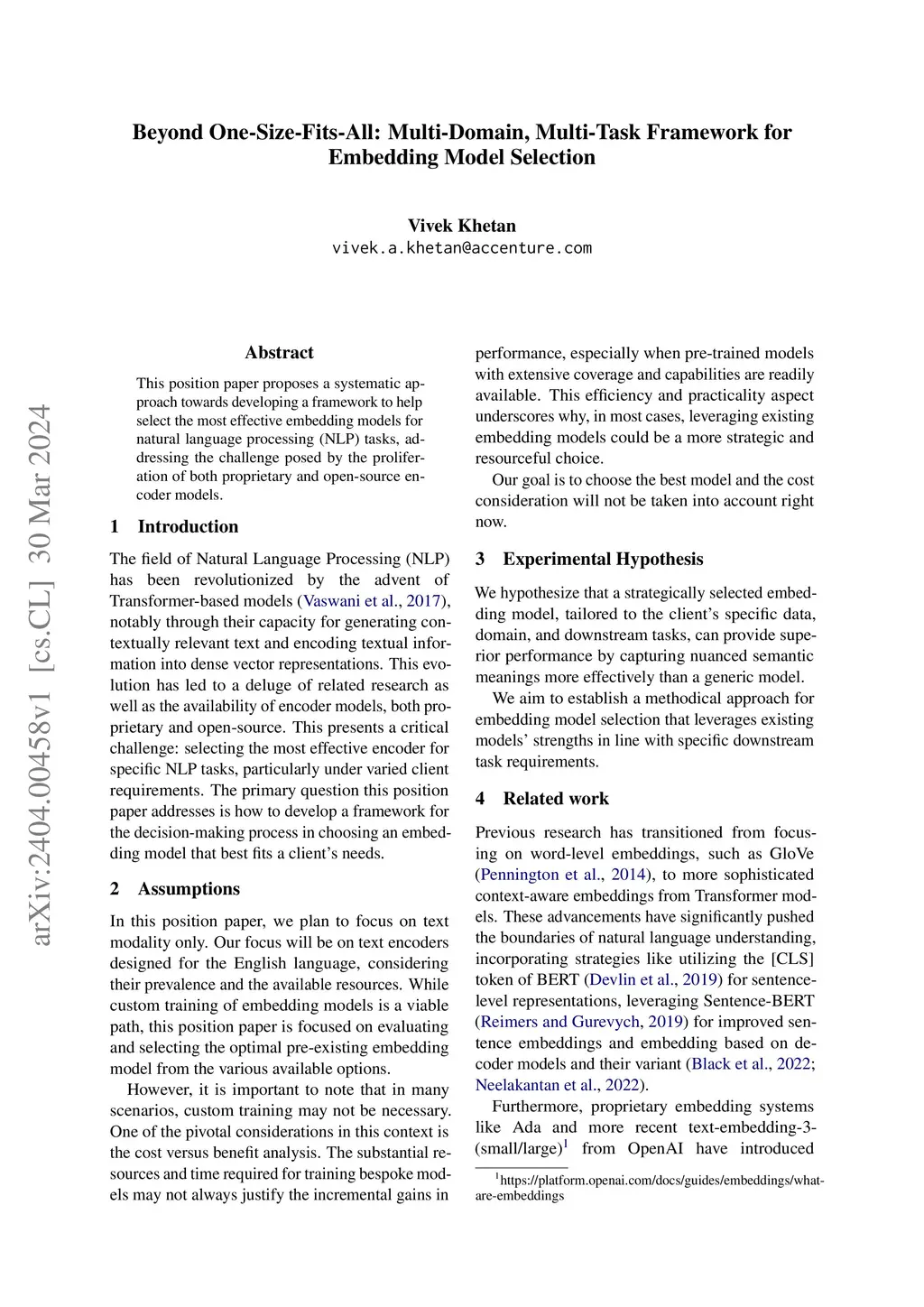 This position paper proposes a systematic approach towards developing a framework to help select the most effective embedding models for natural language processing (NLP) tasks, addressing the challenge posed by the proliferation of both proprietary and open-source encoder models.