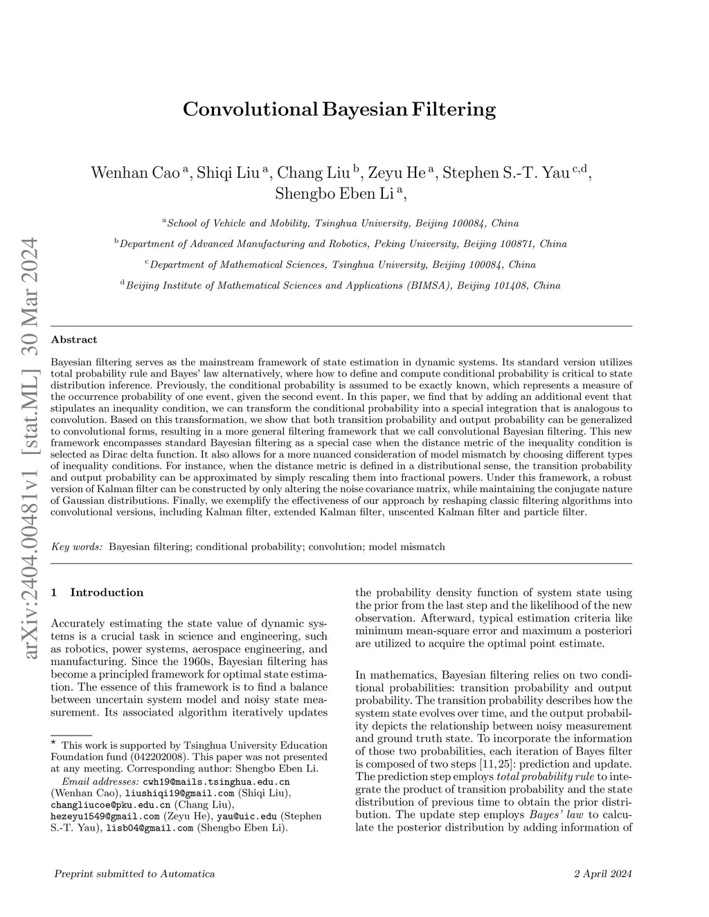 Bayesian filtering serves as the mainstream framework of state estimation in dynamic systems. Its standard version utilizes total probability rule and Bayes' law alternatively, where how to define and compute conditional probability is critical to state distribution inference. Previously, the conditional probability is assumed to be exactly known, which represents a measure of the occurrence probability of one event, given the second event. In this paper, we find that by adding an additional event that stipulates an inequality condition, we can transform the conditional probability into a special integration that is analogous to convolution. Based on this transformation, we show that both transition probability and output probability can be generalized to convolutional forms, resulting in a more general filtering framework that we call convolutional Bayesian filtering. This new framework encompasses standard Bayesian filtering as a special case when the distance metric of the inequality condition is selected as Dirac delta function. It also allows for a more nuanced consideration of model mismatch by choosing different types of inequality conditions. For instance, when the distance metric is defined in a distributional sense, the transition probability and output probability can be approximated by simply rescaling them into fractional powers. Under this framework, a robust version of Kalman filter can be constructed by only altering the noise covariance matrix, while maintaining the conjugate nature of Gaussian distributions. Finally, we exemplify the effectiveness of our approach by reshaping classic filtering algorithms into convolutional versions, including Kalman filter, extended Kalman filter, unscented Kalman filter and particle filter.