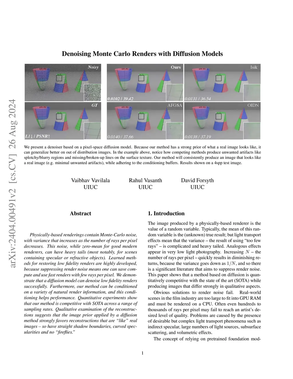 Denoising Monte Carlo Renders With Diffusion Models