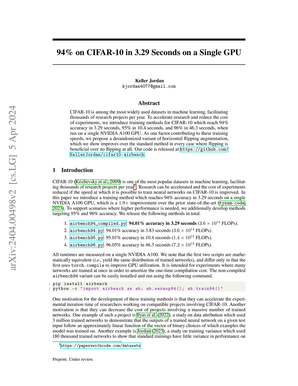 94% on CIFAR-10 in 3.29 Seconds on a Single GPU
