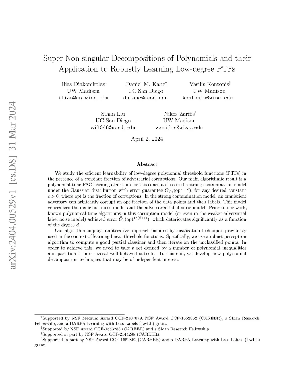 We study the efficient learnability of low-degree polynomial threshold functions (PTFs) in the presence of a constant fraction of adversarial corruptions. Our main algorithmic result is a polynomial-time PAC learning algorithm for this concept class in the strong contamination model under the Gaussian distribution with error guarantee , for any desired constant , where is the fraction of corruptions. In the strong contamination model, an omniscient adversary can arbitrarily corrupt an -fraction of the data points and their labels. This model generalizes the malicious noise model and the adversarial label noise model. Prior to our work, known polynomial-time algorithms in this corruption model (or even in the weaker adversarial label noise model) achieved error , which deteriorates significantly as a function of the degree . Our algorithm employs an iterative approach inspired by localization techniques previously used in the context of learning linear threshold functions. Specifically, we use a robust perceptron algorithm to compute a good partial classifier and then iterate on the unclassified points. In order to achieve this, we need to take a set defined by a number of polynomial inequalities and partition it into several well-behaved subsets. To this end, we develop new polynomial decomposition techniques that may be of independent interest.