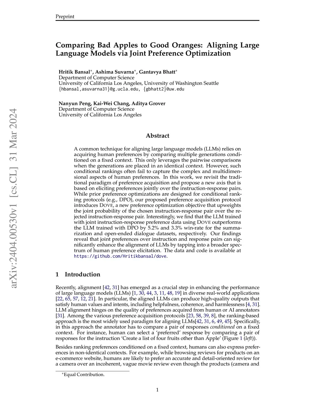 Comparing Bad Apples to Good Oranges: Aligning Large Language Models via Joint Preference Optimization