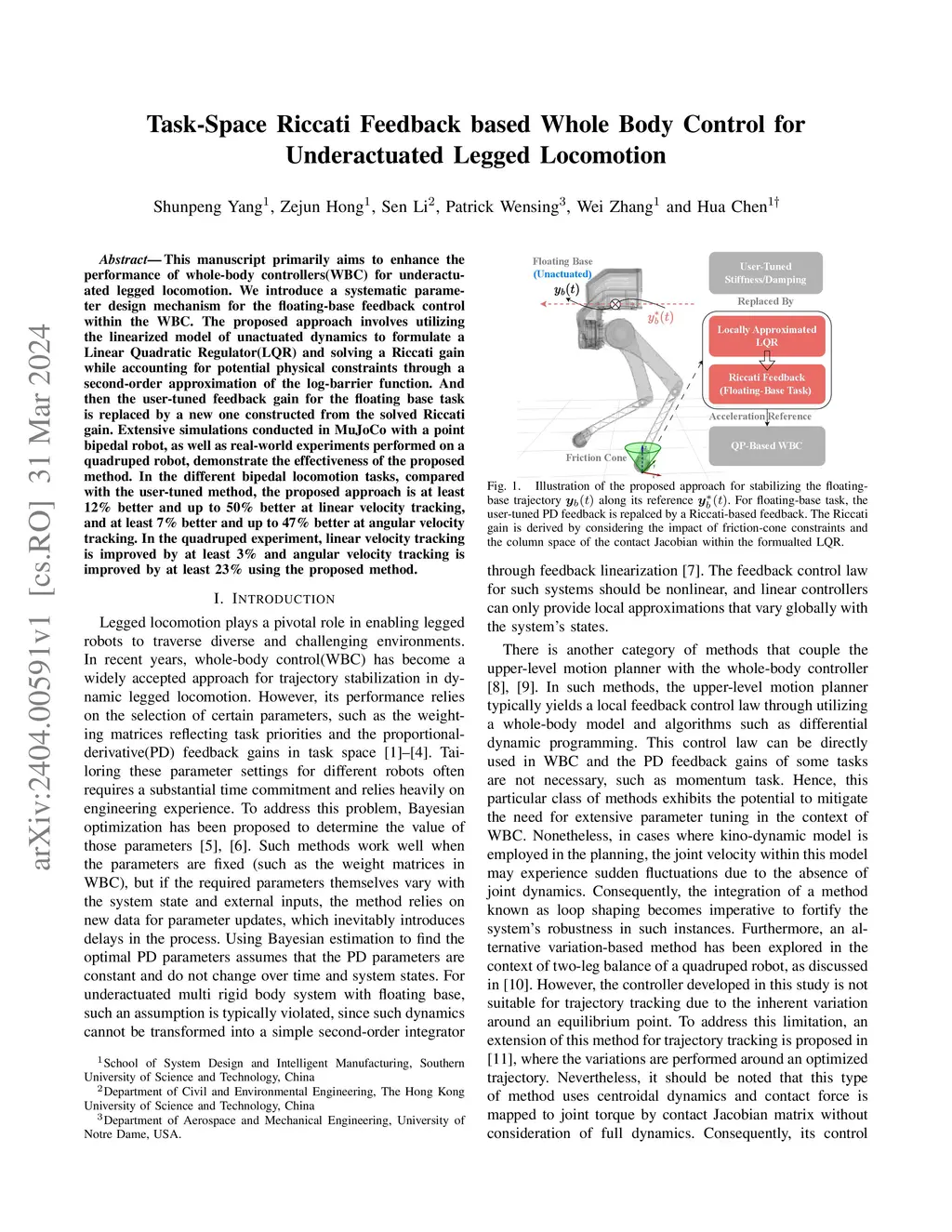 This manuscript primarily aims to enhance the performance of whole-body controllers(WBC) for underactuated legged locomotion. We introduce a systematic parameter design mechanism for the floating-base feedback control within the WBC. The proposed approach involves utilizing the linearized model of unactuated dynamics to formulate a Linear Quadratic Regulator(LQR) and solving a Riccati gain while accounting for potential physical constraints through a second-order approximation of the log-barrier function. And then the user-tuned feedback gain for the floating base task is replaced by a new one constructed from the solved Riccati gain. Extensive simulations conducted in MuJoCo with a point bipedal robot, as well as real-world experiments performed on a quadruped robot, demonstrate the effectiveness of the proposed method. In the different bipedal locomotion tasks, compared with the user-tuned method, the proposed approach is at least 12% better and up to 50% better at linear velocity tracking, and at least 7% better and up to 47% better at angular velocity tracking. In the quadruped experiment, linear velocity tracking is improved by at least 3% and angular velocity tracking is improved by at least 23% using the proposed method.