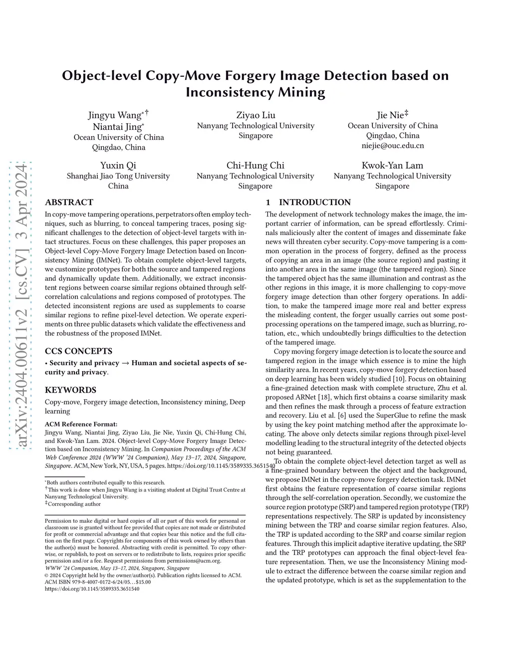 Object-level Copy-Move Forgery Image Detection based on Inconsistency