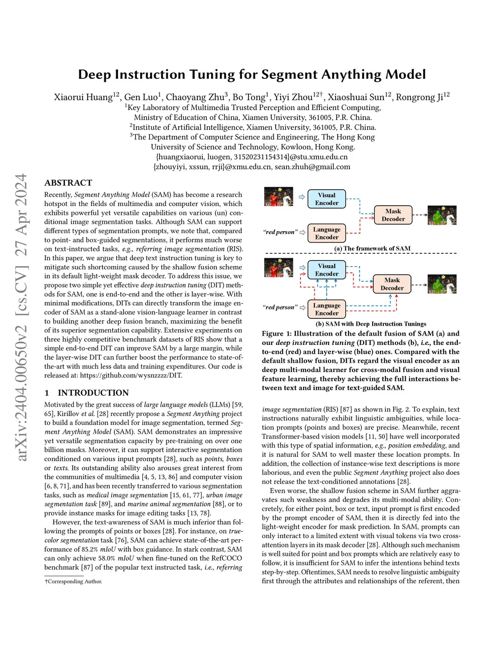 Recently, Segment Anything Model (SAM) has become a research hotspot in the fields of multimedia and computer vision, which exhibits powerful yet versatile capabilities on various (un) conditional image segmentation tasks. Although SAM can support different types of segmentation prompts, we note that, compared to point- and box-guided segmentations, it performs much worse on text-instructed tasks, e.g., referring image segmentation (RIS). In this paper, we argue that deep text instruction tuning is key to mitigate such shortcoming caused by the shallow fusion scheme in its default light-weight mask decoder. To address this issue, we propose two simple yet effective deep instruction tuning (DIT) methods for SAM, one is end-to-end and the other is layer-wise. With minimal modifications, DITs can directly transform the image encoder of SAM as a stand-alone vision-language learner in contrast to building another deep fusion branch, maximizing the benefit of its superior segmentation capability. Extensive experiments on three highly competitive benchmark datasets of RIS show that a simple end-to-end DIT can improve SAM by a large margin, while the layer-wise DIT can further boost the performance to state-of-the-art with much less data and training expenditures. Our code is released at: https://github.com/wysnzzzz/DIT.