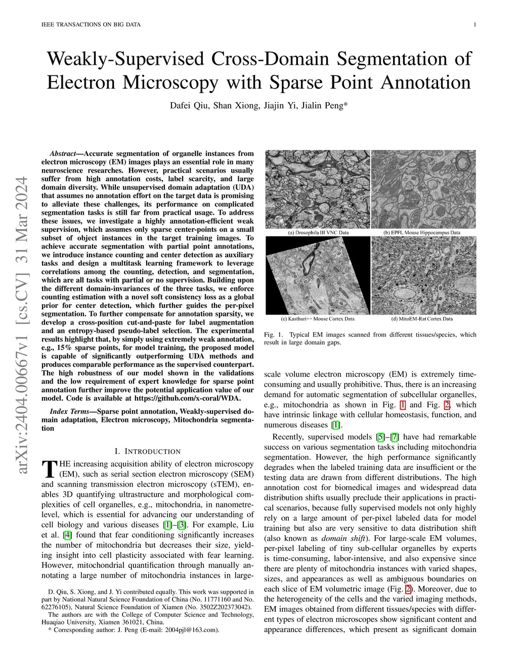 Weakly-Supervised Cross-Domain Segmentation of Electron Microscopy with