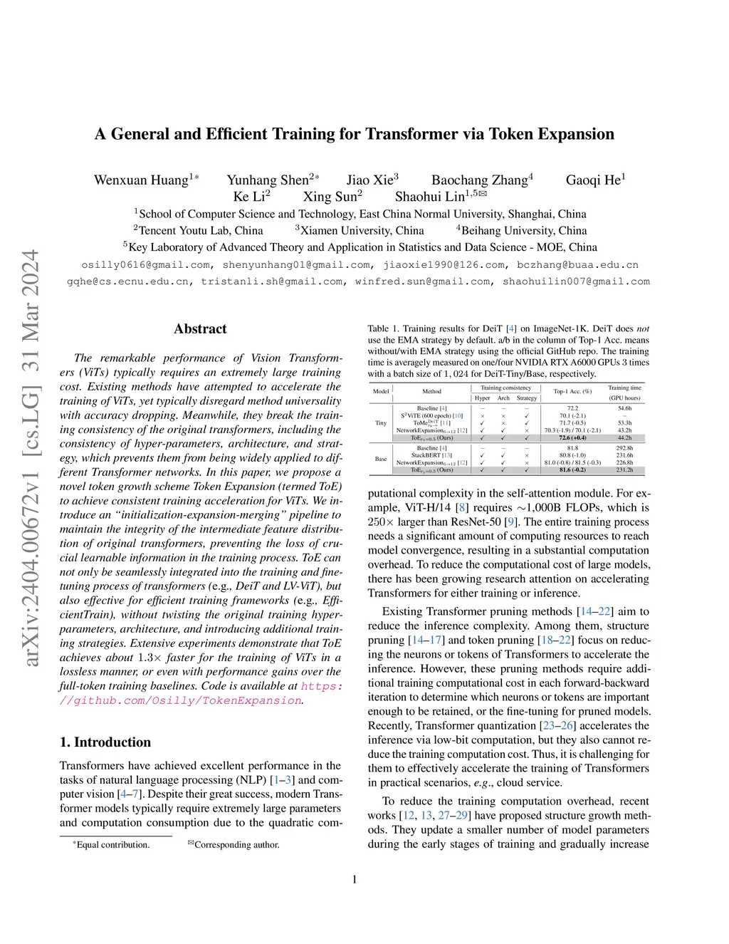 A General and Efficient Training for Transformer via Token Expansion