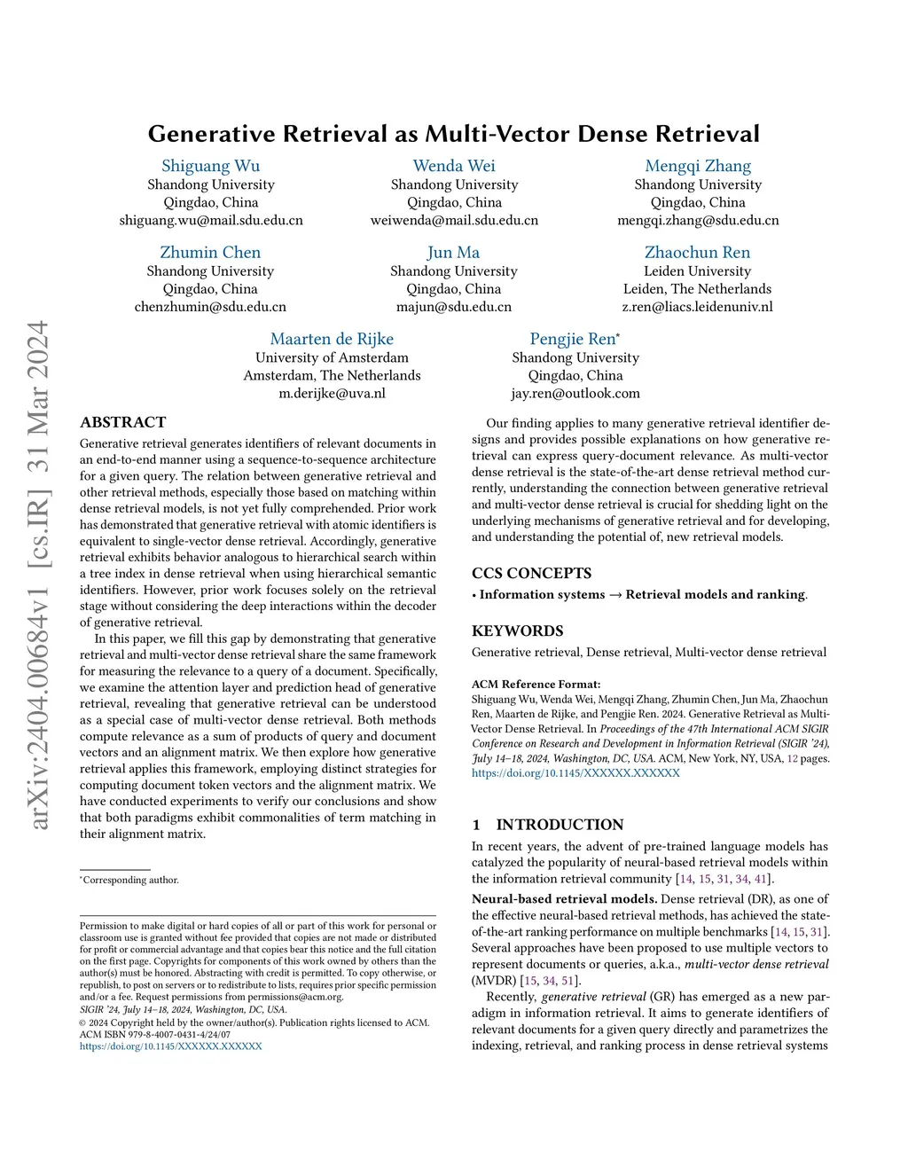 Generative Retrieval as Multi-Vector Dense Retrieval