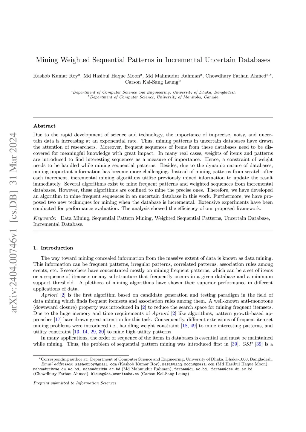 Mining Weighted Sequential Patterns in Incremental Uncertain Databases