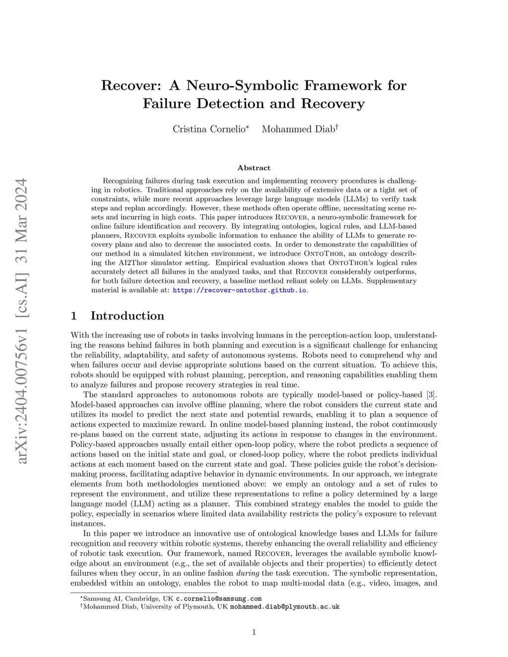 Recover: A Neuro-Symbolic Framework for Failure Detection and Recovery