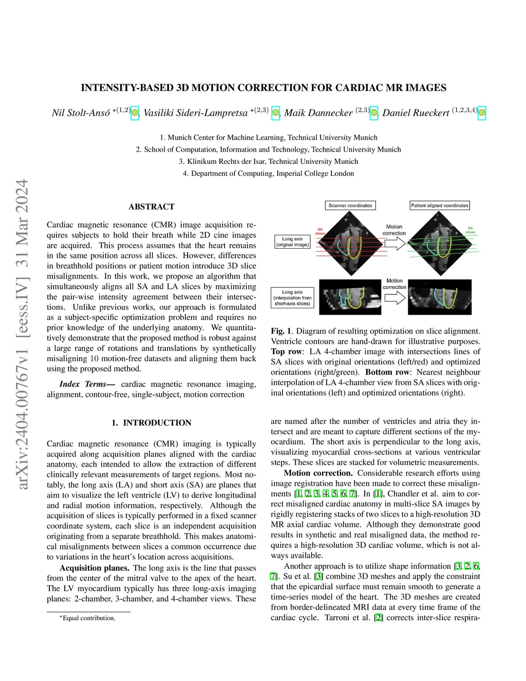Cardiac magnetic resonance (CMR) image acquisition requires subjects to hold their breath while 2D cine images are acquired. This process assumes that the heart remains in the same position across all slices. However, differences in breathhold positions or patient motion introduce 3D slice misalignments. In this work, we propose an algorithm that simultaneously aligns all SA and LA slices by maximizing the pair-wise intensity agreement between their intersections. Unlike previous works, our approach is formulated as a subject-specific optimization problem and requires no prior knowledge of the underlying anatomy. We quantitatively demonstrate that the proposed method is robust against a large range of rotations and translations by synthetically misaligning 10 motion-free datasets and aligning them back using the proposed method.