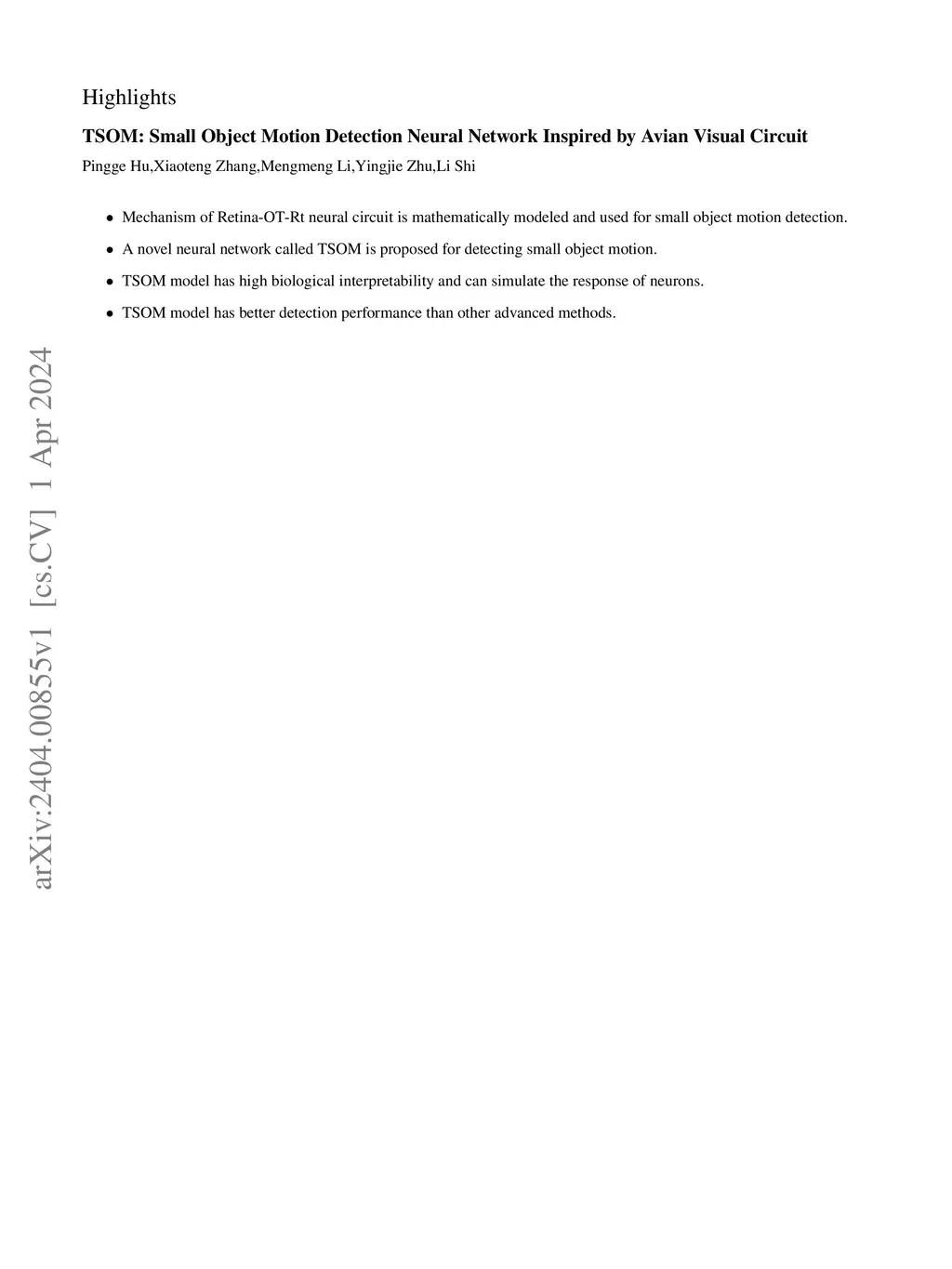 TSOM: Small Object Motion Detection Neural Network Inspired by Avian