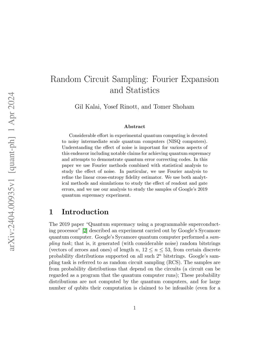Considerable effort in experimental quantum computing is devoted to noisy intermediate scale quantum computers (NISQ computers). Understanding the effect of noise is important for various aspects of this endeavor including notable claims for achieving quantum supremacy and attempts to demonstrate quantum error correcting codes. In this paper we use Fourier methods combined with statistical analysis to study the effect of noise. In particular, we use Fourier analysis to refine the linear cross-entropy fidelity estimator. We use both analytical methods and simulations to study the effect of readout and gate errors, and we use our analysis to study the samples of Google's 2019 quantum supremacy experiment.