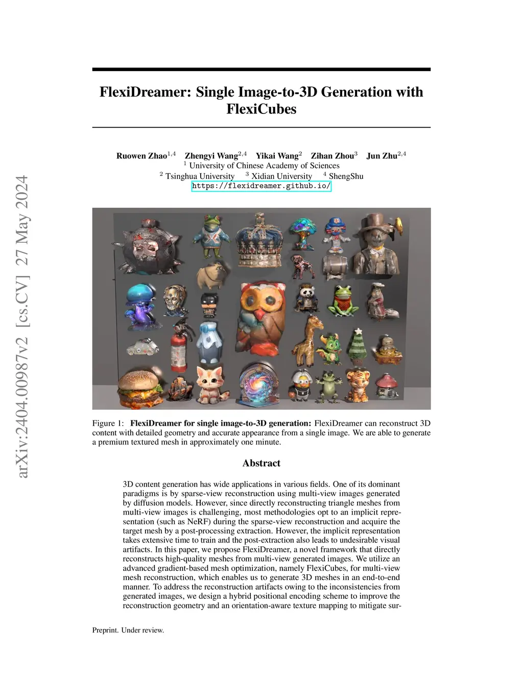 3D content generation has wide applications in various fields. One of its dominant paradigms is by sparse-view reconstruction using multi-view images generated by diffusion models. However, since directly reconstructing triangle meshes from multi-view images is challenging, most methodologies opt to an implicit representation (such as NeRF) during the sparse-view reconstruction and acquire the target mesh by a post-processing extraction. However, the implicit representation takes extensive time to train and the post-extraction also leads to undesirable visual artifacts. In this paper, we propose FlexiDreamer, a novel framework that directly reconstructs high-quality meshes from multi-view generated images. We utilize an advanced gradient-based mesh optimization, namely FlexiCubes, for multi-view mesh reconstruction, which enables us to generate 3D meshes in an end-to-end manner. To address the reconstruction artifacts owing to the inconsistencies from generated images, we design a hybrid positional encoding scheme to improve the reconstruction geometry and an orientation-aware texture mapping to mitigate surface ghosting. To further enhance the results, we respectively incorporate eikonal and smooth regularizations to reduce geometric holes and surface noise. Our approach can generate high-fidelity 3D meshes in the single image-to-3D downstream task with approximately 1 minute, significantly outperforming previous methods.