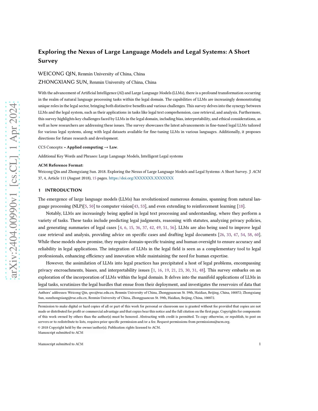 Exploring the Nexus of Large Language Models and Legal Systems: A Short