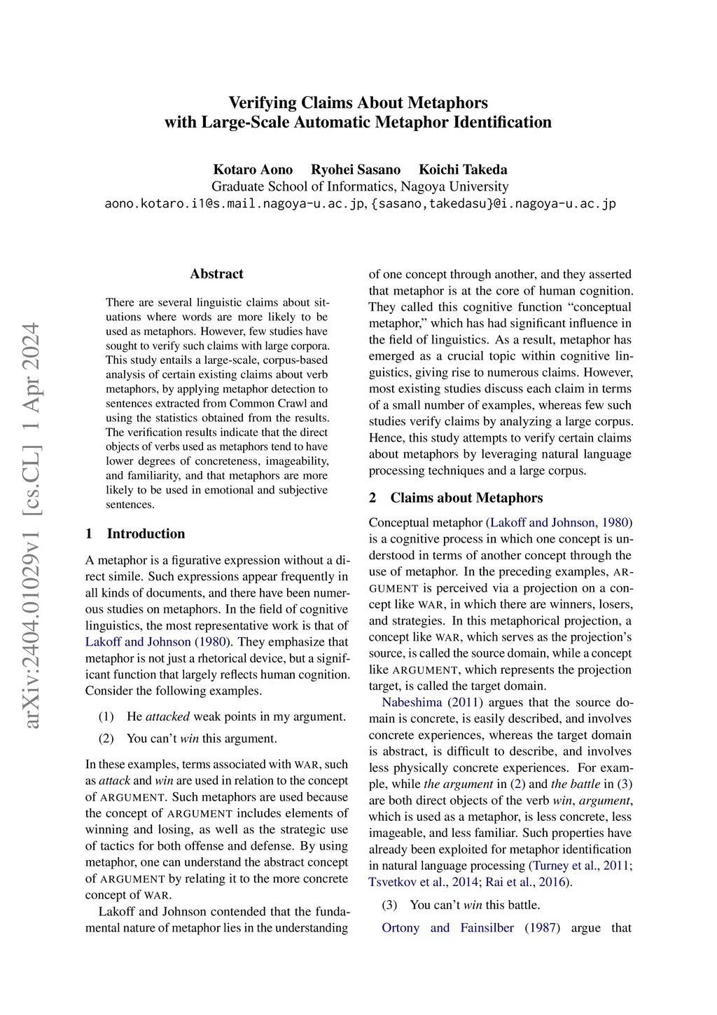 Verifying Claims About Metaphors with Large-Scale Automatic Metaphor