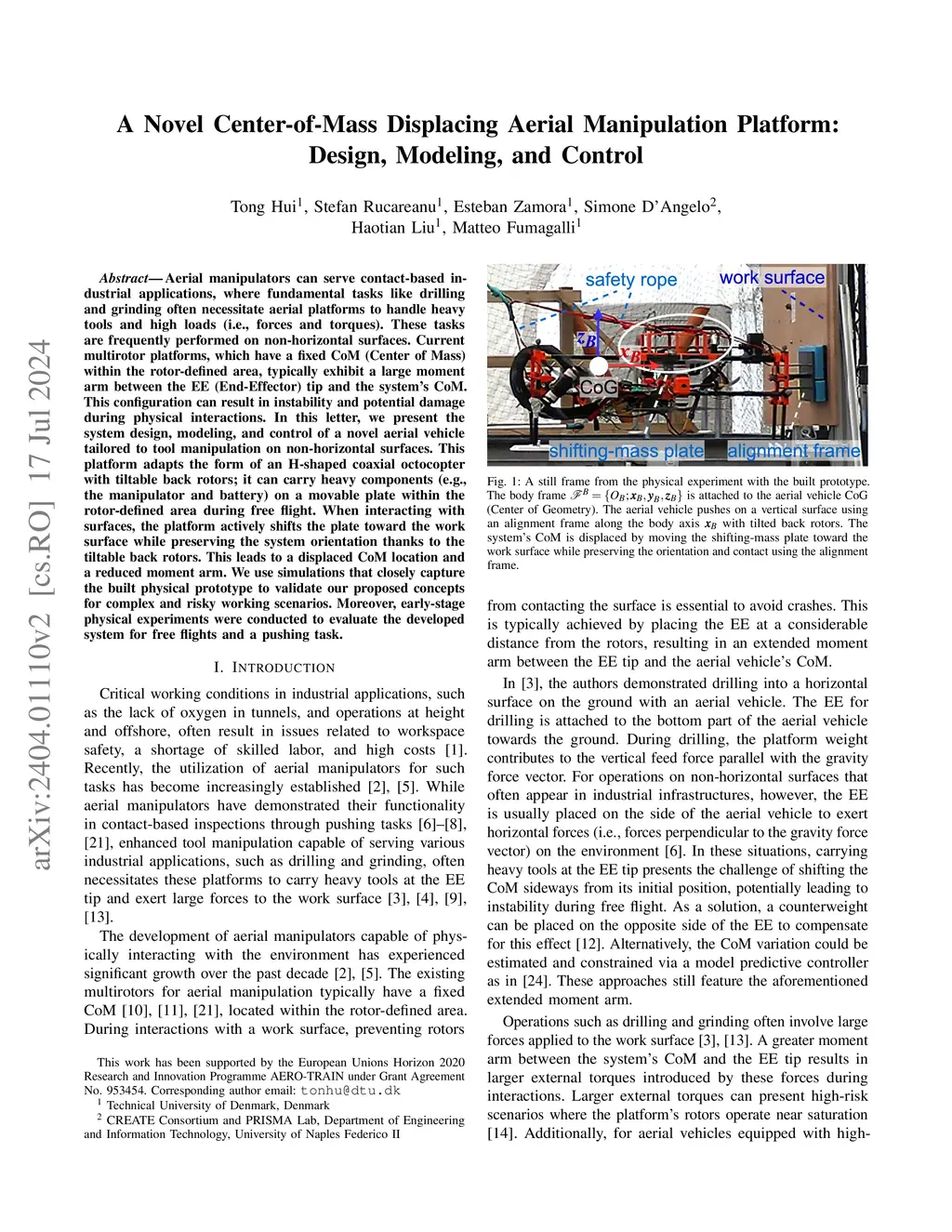 A Novel Center-of-Mass Displacing Aerial Manipulation Platform: Design,