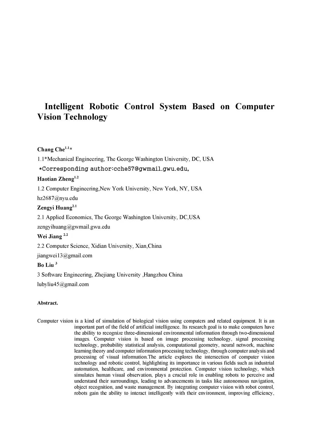 Intelligent Robotic Control System Based on Computer Vision Technology