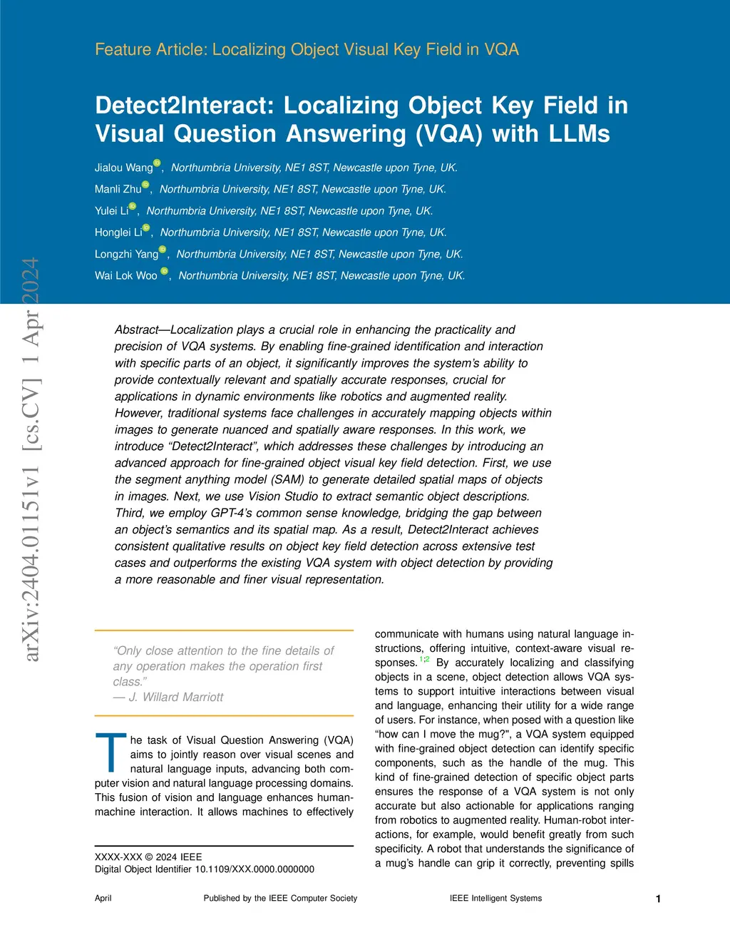 Localization plays a crucial role in enhancing the practicality and precision of VQA systems. By enabling fine-grained identification and interaction with specific parts of an object, it significantly improves the system's ability to provide contextually relevant and spatially accurate responses, crucial for applications in dynamic environments like robotics and augmented reality. However, traditional systems face challenges in accurately mapping objects within images to generate nuanced and spatially aware responses. In this work, we introduce "Detect2Interact", which addresses these challenges by introducing an advanced approach for fine-grained object visual key field detection. First, we use the segment anything model (SAM) to generate detailed spatial maps of objects in images. Next, we use Vision Studio to extract semantic object descriptions. Third, we employ GPT-4's common sense knowledge, bridging the gap between an object's semantics and its spatial map. As a result, Detect2Interact achieves consistent qualitative results on object key field detection across extensive test cases and outperforms the existing VQA system with object detection by providing a more reasonable and finer visual representation.