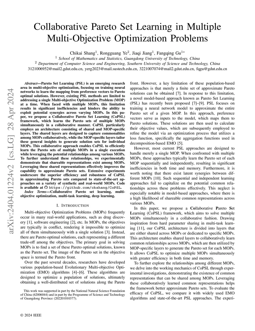 Collaborative Pareto Set Learning in Multiple Multi-Objective Optimization Problems