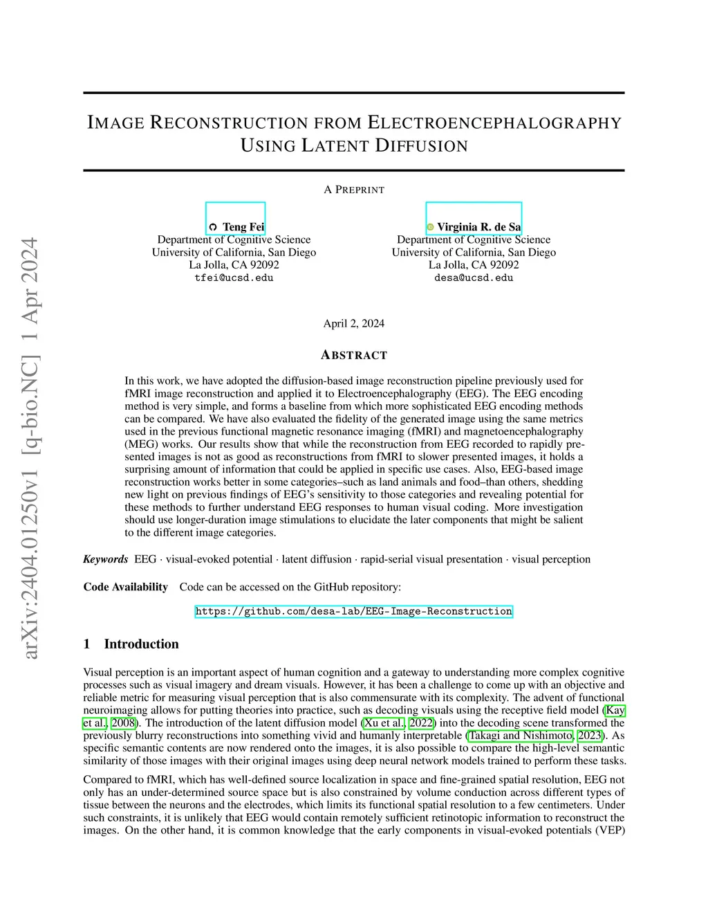 Image Reconstruction from Electroencephalography Using Latent Diffusion