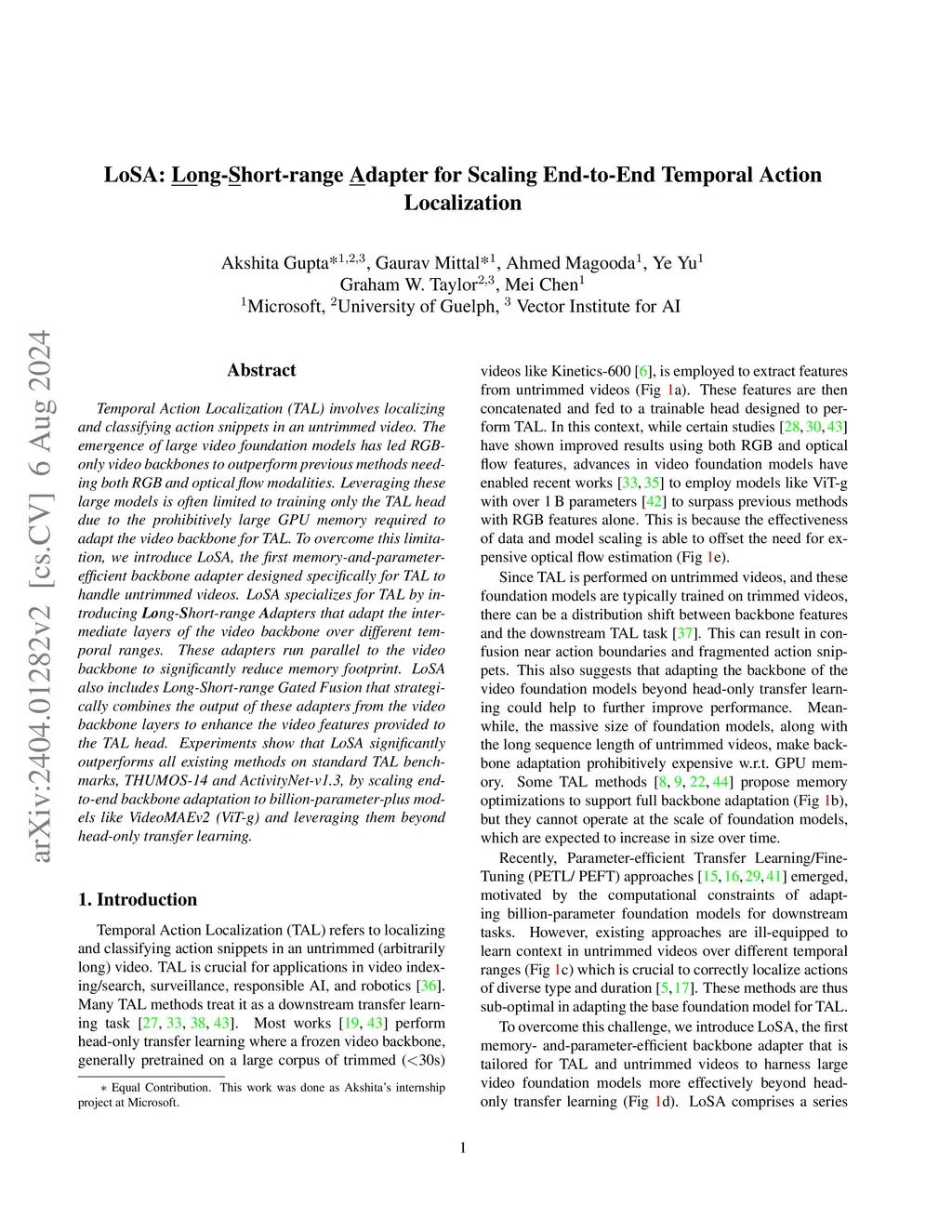LoSA: Long-Short-range Adapter for Scaling End-to-End Temporal Action