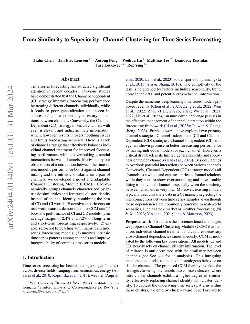 Time series forecasting has attracted significant attention in recent decades. Previous studies have demonstrated that the Channel-Independent (CI) strategy improves forecasting performance by treating different channels individually, while it leads to poor generalization on unseen instances and ignores potentially necessary interactions between channels. Conversely, the Channel-Dependent (CD) strategy mixes all channels with even irrelevant and indiscriminate information, which, however, results in oversmoothing issues and limits forecasting accuracy. There is a lack of channel strategy that effectively balances individual channel treatment for improved forecasting performance without overlooking essential interactions between channels. Motivated by our observation of a correlation between the time series model's performance boost against channel mixing and the intrinsic similarity on a pair of channels, we developed a novel and adaptable Channel Clustering Module (CCM). CCM dynamically groups channels characterized by intrinsic similarities and leverages cluster identity instead of channel identity, combining the best of CD and CI worlds. Extensive experiments on real-world datasets demonstrate that CCM can (1) boost the performance of CI and CD models by an average margin of 2.4% and 7.2% on long-term and short-term forecasting, respectively; (2) enable zero-shot forecasting with mainstream time series forecasting models; (3) uncover intrinsic time series patterns among channels and improve interpretability of complex time series models.