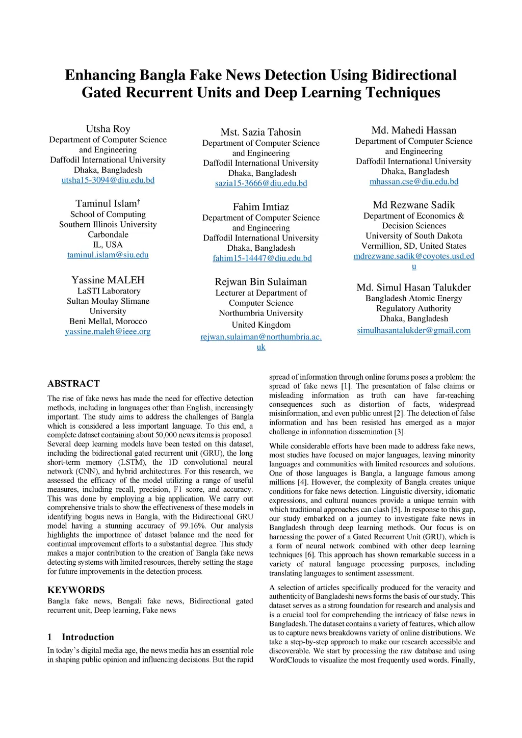 Enhancing Bangla Fake News Detection Using Bidirectional Gated Recurrent
