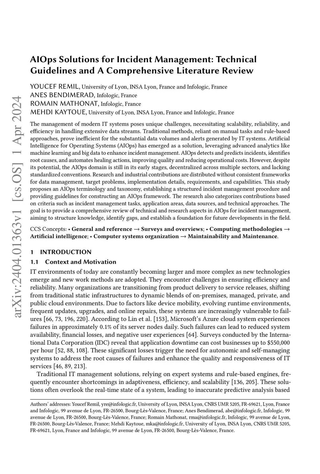 AIOps Solutions for Incident Management: Technical Guidelines and A