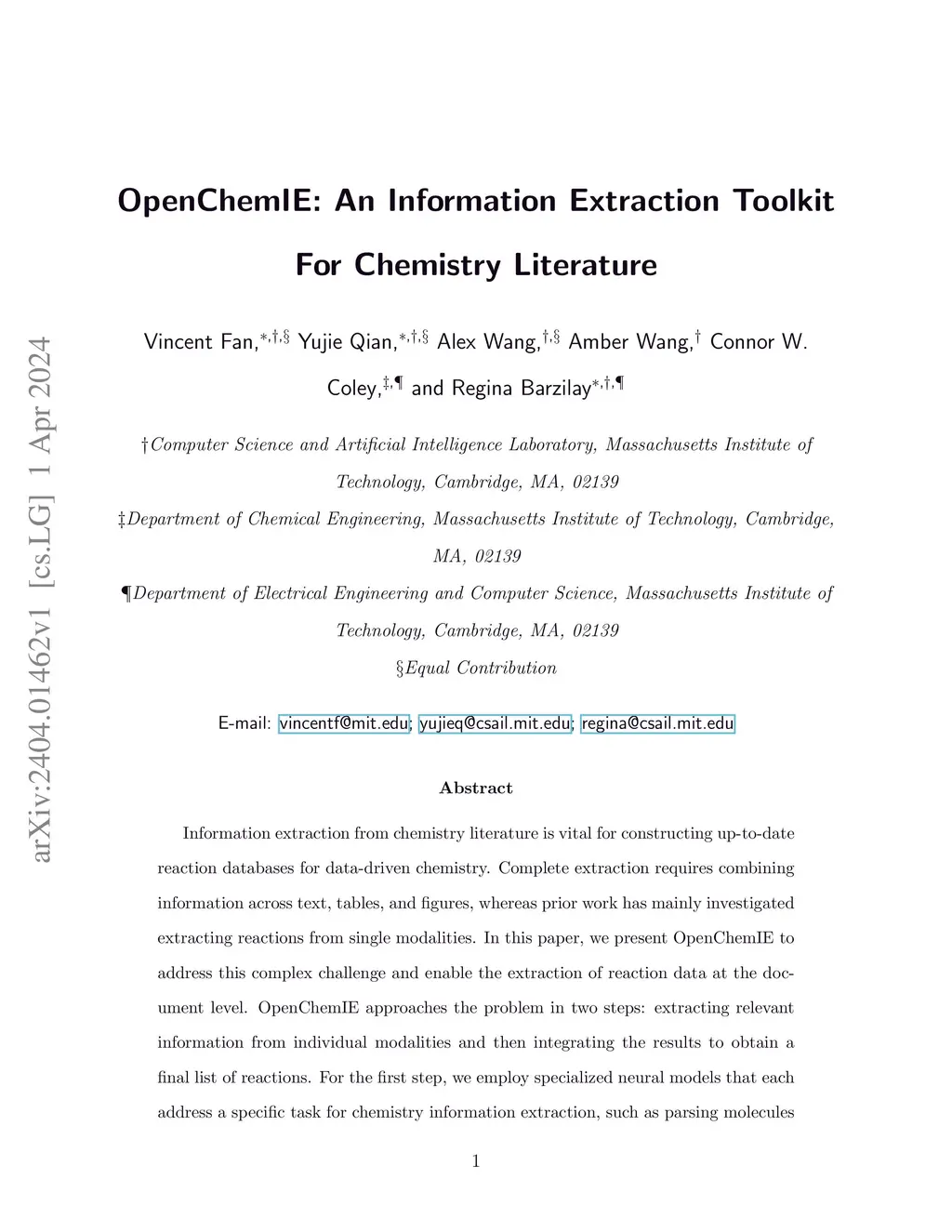 OpenChemIE: An Information Extraction Toolkit For Chemistry Literature