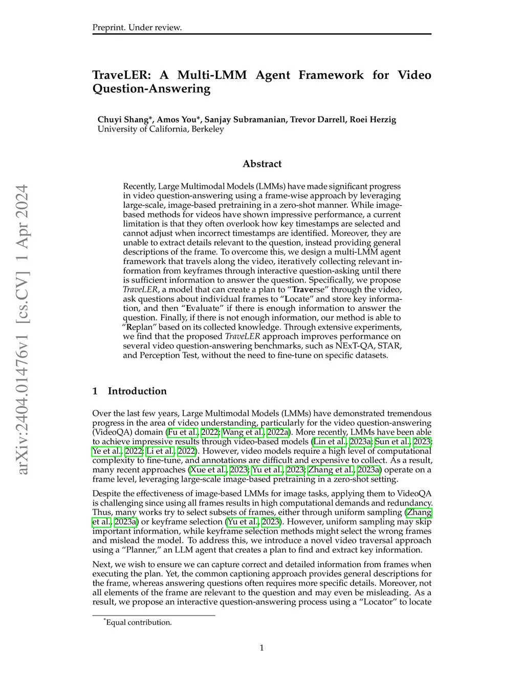 TraveLER: A Multi-LMM Agent Framework for Video Question-Answering