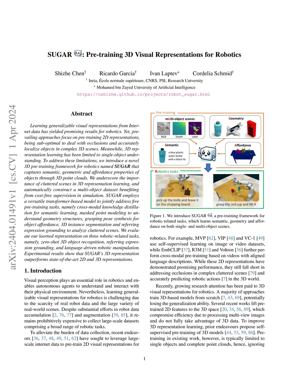 SUGAR: Pre-training 3D Visual Representations for Robotics