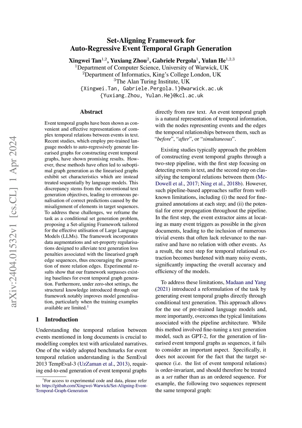 Event temporal graphs have been shown as convenient and effective representations of complex temporal relations between events in text. Recent studies, which employ pre-trained language models to auto-regressively generate linearised graphs for constructing event temporal graphs, have shown promising results. However, these methods have often led to suboptimal graph generation as the linearised graphs exhibit set characteristics which are instead treated sequentially by language models. This discrepancy stems from the conventional text generation objectives, leading to erroneous penalisation of correct predictions caused by the misalignment of elements in target sequences. To address these challenges, we reframe the task as a conditional set generation problem, proposing a Set-aligning Framework tailored for the effective utilisation of Large Language Models (LLMs). The framework incorporates data augmentations and set-property regularisations designed to alleviate text generation loss penalties associated with the linearised graph edge sequences, thus encouraging the generation of more relation edges. Experimental results show that our framework surpasses existing baselines for event temporal graph generation. Furthermore, under zero-shot settings, the structural knowledge introduced through our framework notably improves model generalisation, particularly when the training examples available are limited.