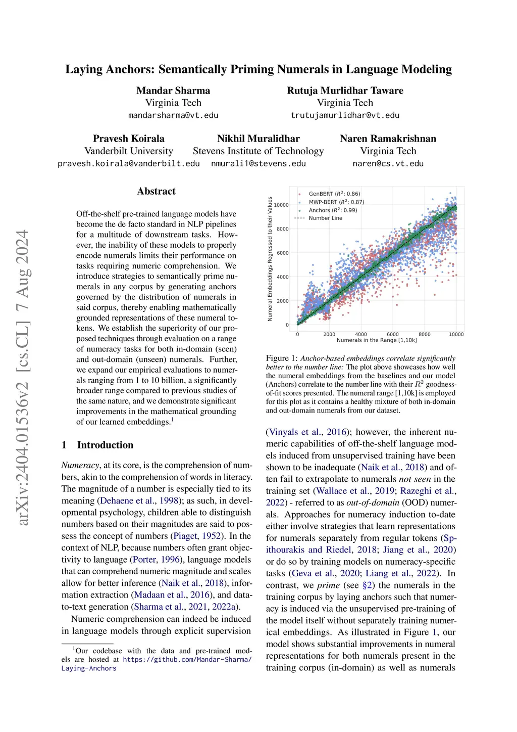 Laying Anchors: Semantically Priming Numerals in Language Modeling