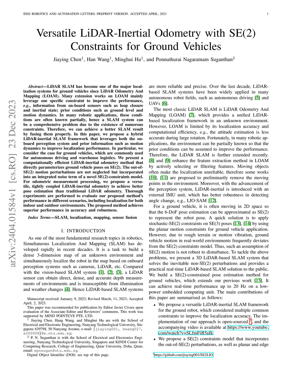 Versatile LiDAR-Inertial Odometry With SE (2) Constraints for Ground