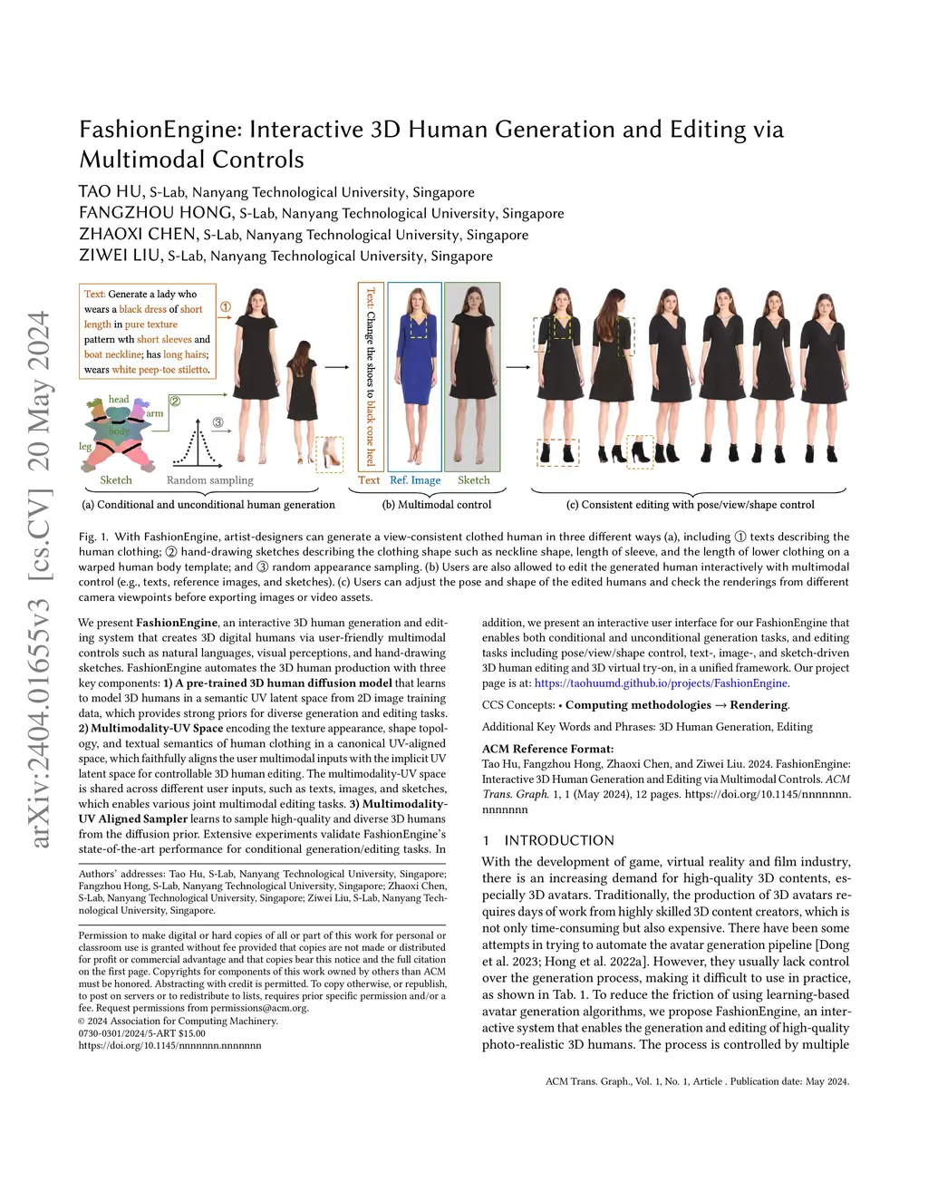 FashionEngine: Interactive Generation and Editing of 3D Clothed Humans