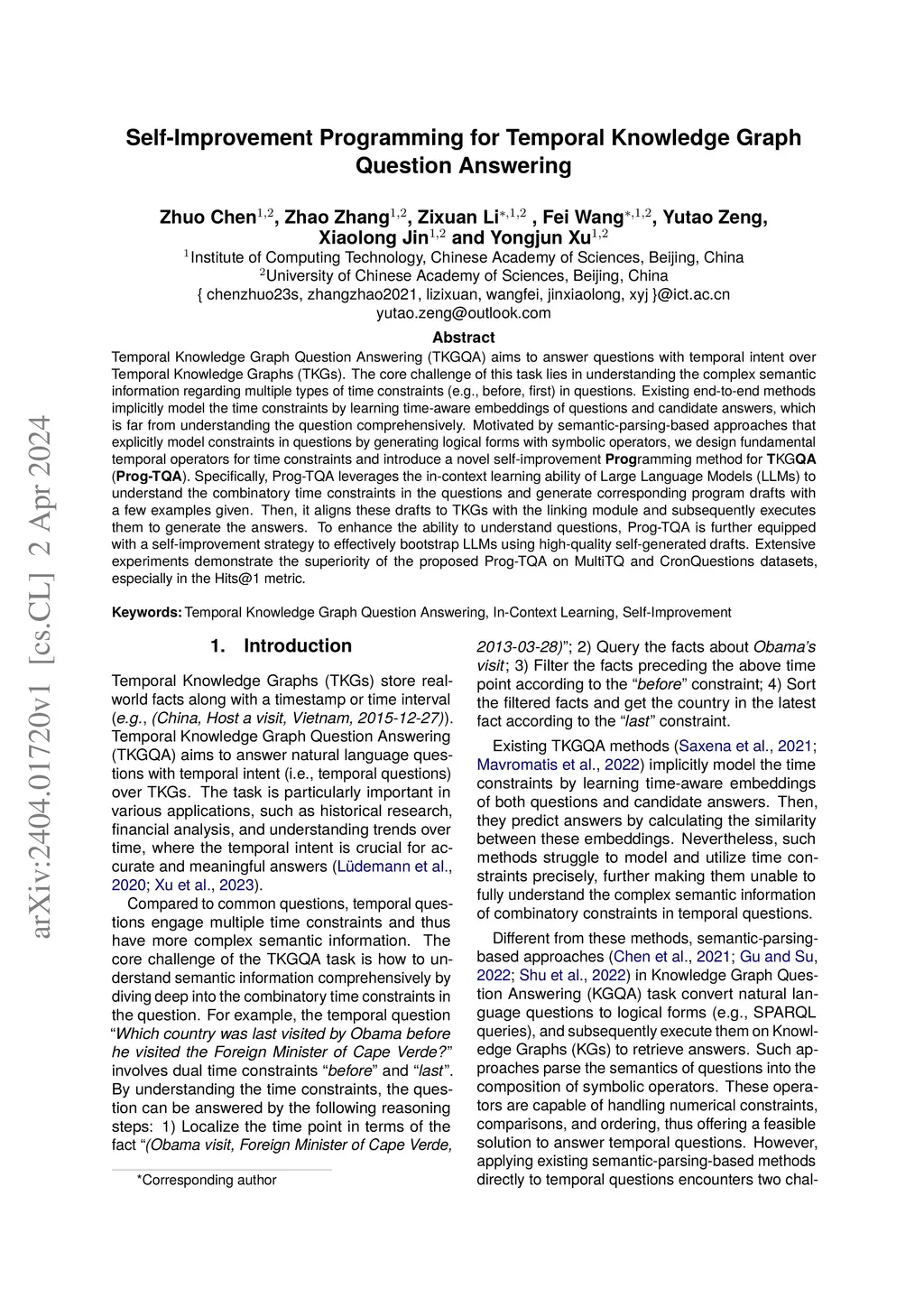 Self-Improvement Programming for Temporal Knowledge Graph Question