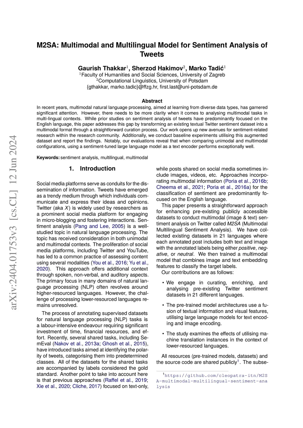 M2SA: Multimodal and Multilingual Model for Sentiment Analysis of Tweets