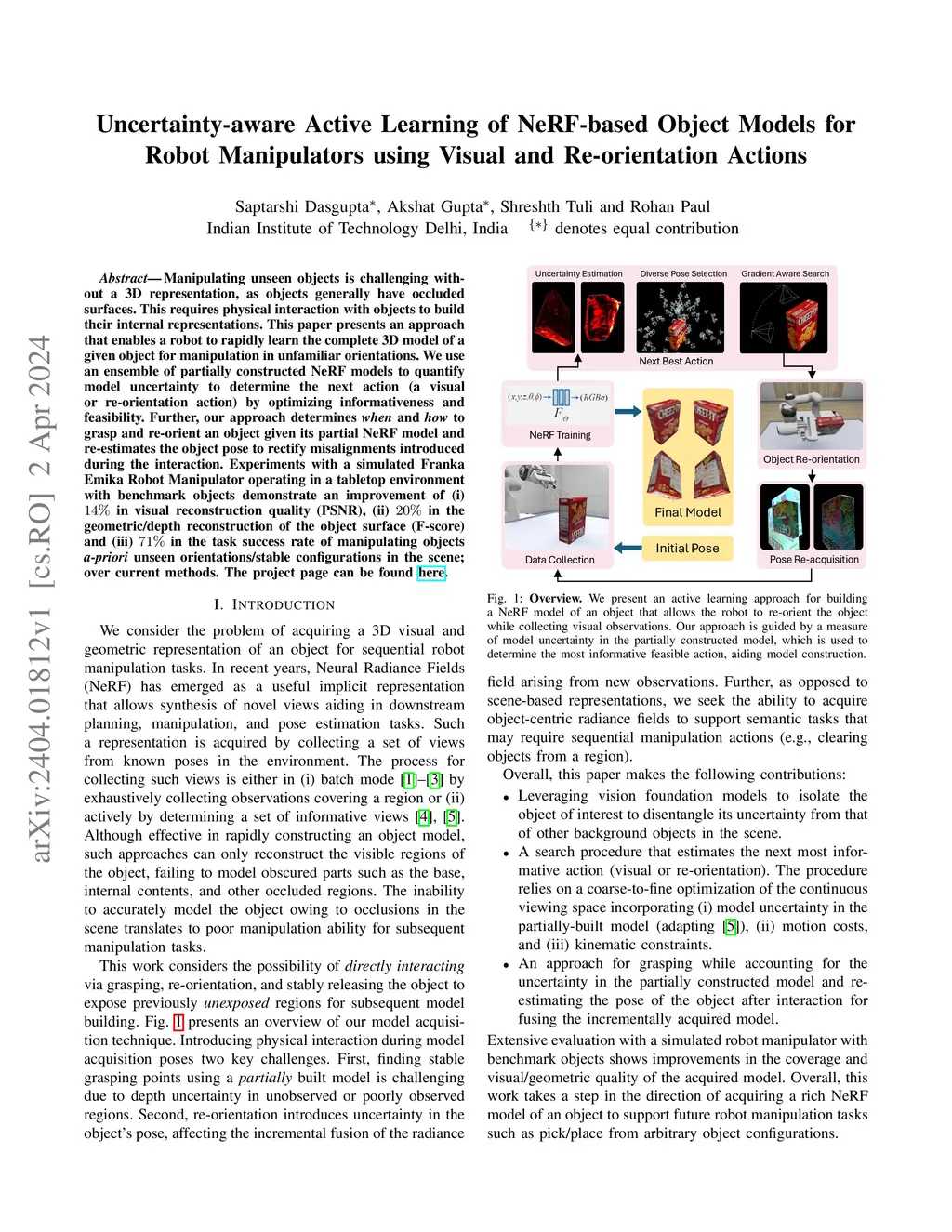 Uncertainty-aware Active Learning of NeRF-based Object Models for Robot